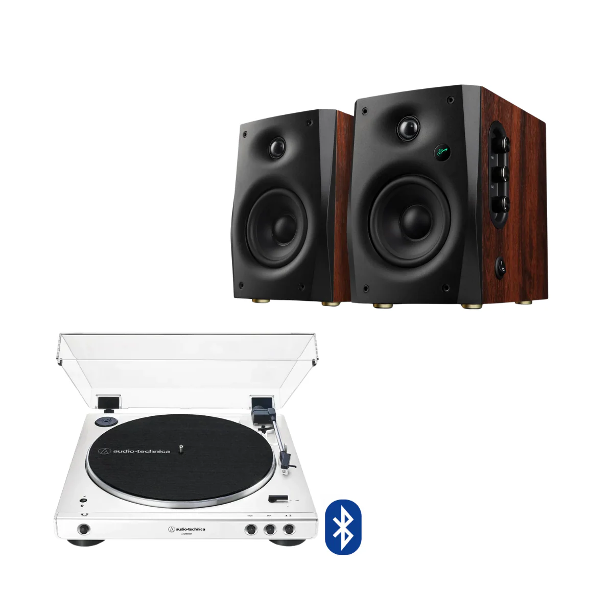 Incluye: Tornamesa AT-LP60XBT (con aguja instalada) + Parlantes D1100 (par) + cables de conexión.